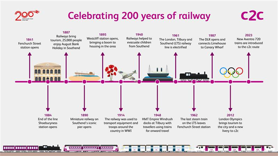 At c2c, we are very proud to join our railway colleagues across the UK to mark the occasion and to celebrate the milestones that have taken place across our line in those 200 years.