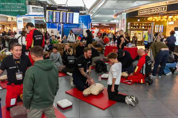 You’ve got to admire our Clinical Community Lead, Adam Carr, for his sheer ambition (and stamina!). Determined to spread life-saving CPR skills far and wide, Adam rallied a team of volunteers for a very long day at London Stansted Airport.