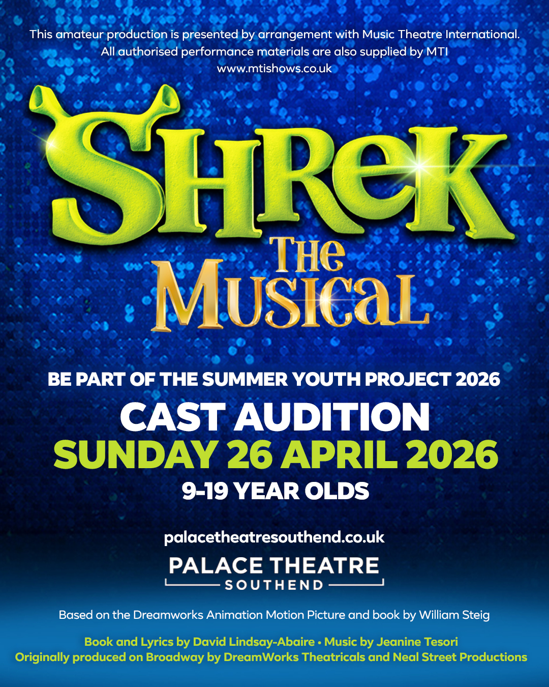 There will also be opportunities for young people to join the technical youth team for the production. SYP Technical Youth Team interviews will take place Thursday 9 April 2026 at the Palace Theatre. More information on these can be found in the application form and audition pack which can be found here: or can be found on the theatres’ website: www.palacetheatresouthend.co.uk, under the Get Involved section.